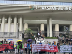 Disela-sela aksinya, massa juga nampak membagikan bunga mawar kepada masyarakat yang melintas disekitaran lokasi aksi.